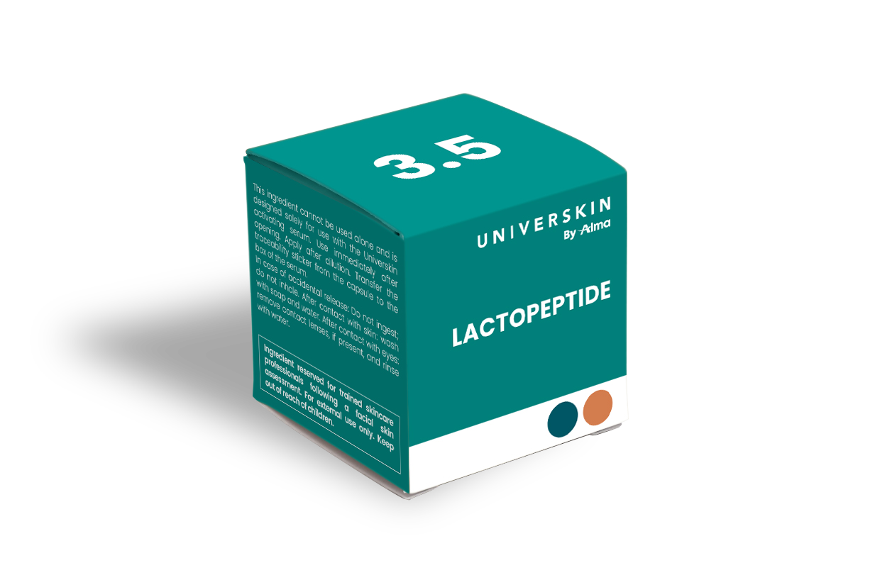 Universkin by Alma全線系列均採用Inflammarker P-HC Technology抗炎專利技術,已獲取歐洲專利EP2165698認證,其專利配方是由三種具有特殊功能的信號勝肽,一種生長因子的勝肽和亞麻薺油組合而成,有效: